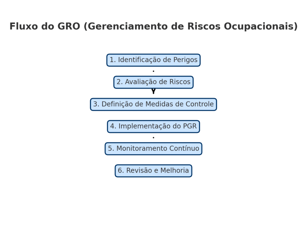 O GRO é um dos pilares da nova NR 01. Ele consiste em um conjunto de ações para identificar, avaliar, monitorar e controlar os riscos ocupacionais.